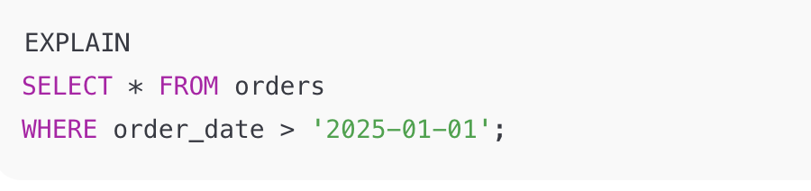 What does the EXPLAIN command do in SQL? 2 Marks